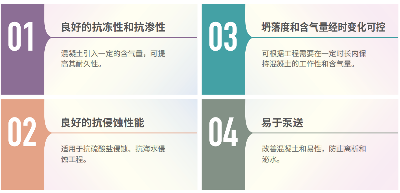 提高泵送性能、抗?jié)B性能和抗凍融循環(huán)性能,對