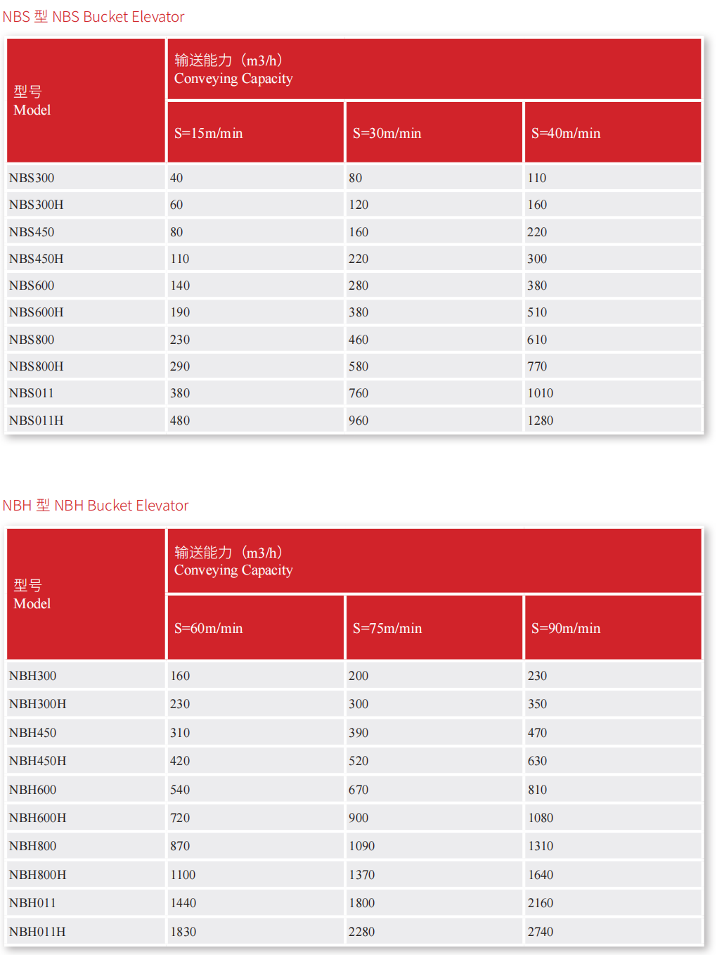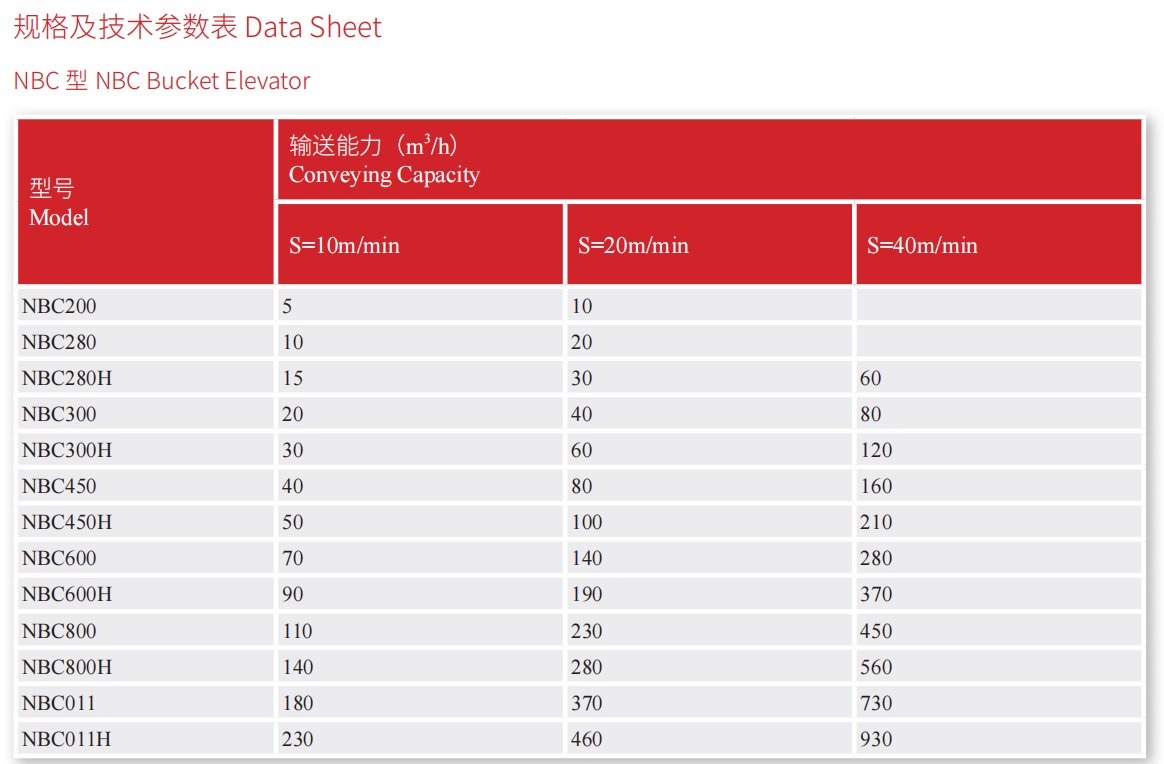 NBH 型(NBH-C):由 NBS 發(fā)展的一種高速斗式提升機(jī),由于運(yùn)行速度高,在提升能力相同時(shí),可采用比